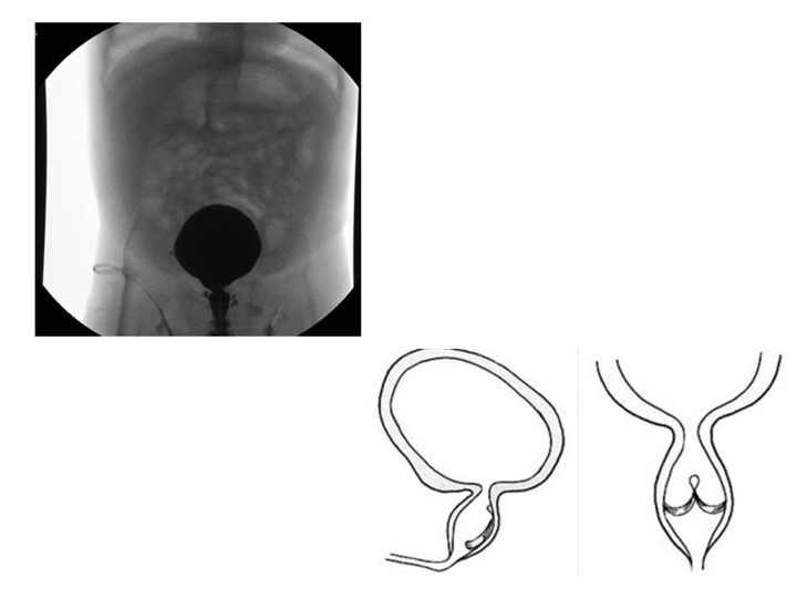 All’ecografia prenatale segni sospetti per la presenza di valvole uretrali sono rappresentati dalla presenza di idroureteronefrosi bilaterale con vescica dilatata, iperecogenicità del parenchima renale, ed oligoidramnios. La vescica ha pareti molto spesse con possibili diverticoli e collo rigido. L’uretra prostatica è distesa ed i dotti eiaculatori possono essere dilatati alla cistografia (segno del ‘buco della serratura’). La gestione del neonato con VUP è, possibilmente, a carico di un team multidisciplinare che comprende neonatologi e pediatri della Terapia Intensiva Neonatale dove viene ricoverato il bambino, l’urologo ed il nefrologo pediatra. La diagnosi viene confermata dall’esecuzione di una cistografia minzionale (CUM) dopo la nascita. Creatinina, azotemia ed elettroliti vengono strettamente monitorati durante i primi giorni.